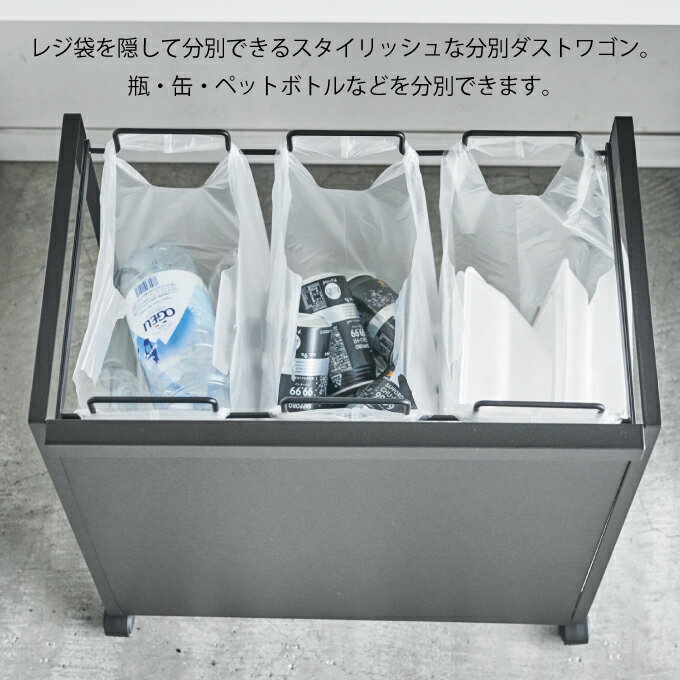 商品詳細 商品名tower 目隠し分別ダストワゴン 3分別 タワー ポイントレジ袋を隠して分別できるスタイリッシュな分別ダストワゴン。