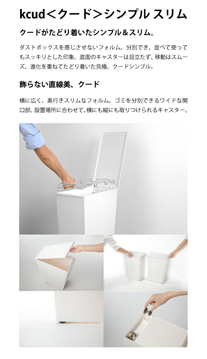 商品詳細 商品名kcud ゴミ箱 SIMPLE スリム KUDSP-SLH ポイント大人気KCUDのダストボックスに、進化を重ねてたどり着いた、SIMPLEシリーズです。