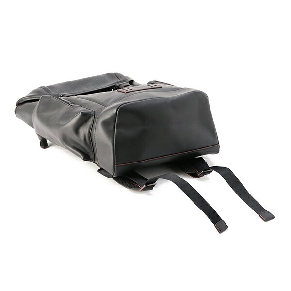 マットなブラックのレザーにダークレッドのトリミングがスタイリッシュなアイテム。